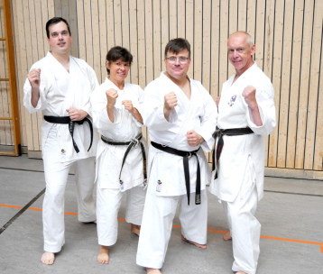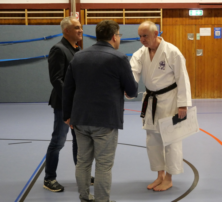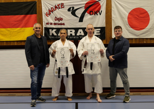 Verleihung des 6. Dan im Karate an Carsten Schmitt und Nicolas Hofele durch Peter Consterdine und Iain Abernethy