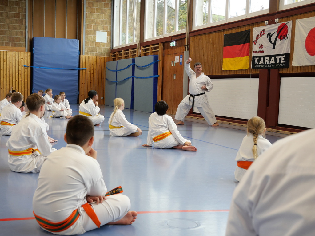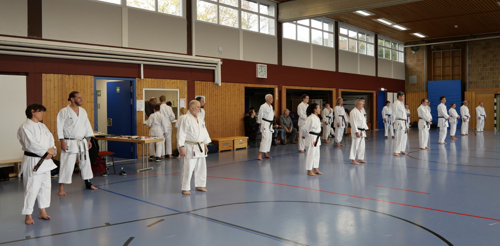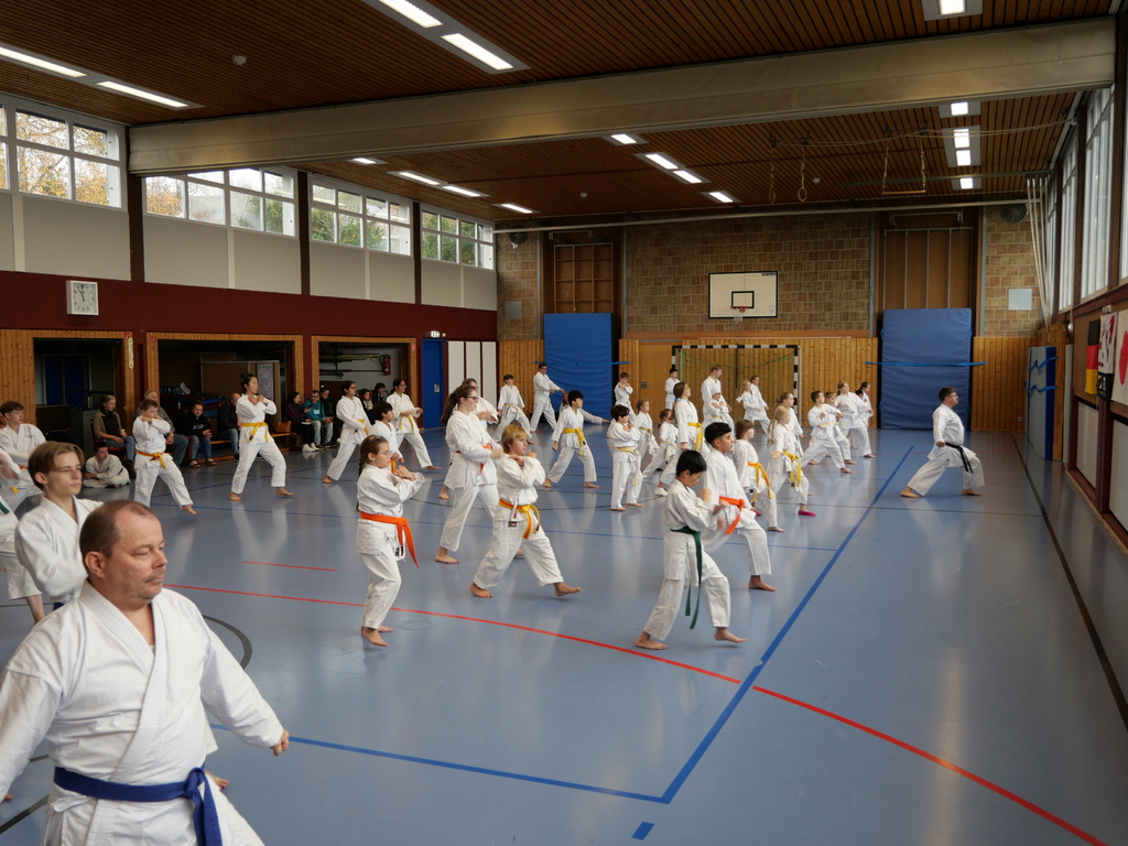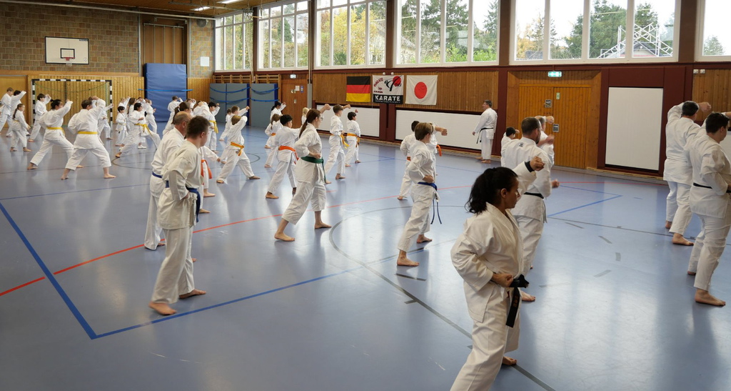 Rund 65 Karate Ka darunter Gäste aus Hermeskeil, Traben Trarbach, Koblenz und Züsch, kamen zum Lehrgang mit Kata Landetrainer Marcus Gutzmer. In der Unterstufen wurde natürlich viel Kihon aber auch die Grund- bzw. Heian Kata eingeübt. Bewi der Oberstufe waren die beiden Kata Chinte und Meikyo dasThema und wurden jeweils mit Anwendung (Bunkai) eingeübt. Danke für den guten Besuch, die zahlreiche Hilfe und auch Essens- und Getränkespenden.